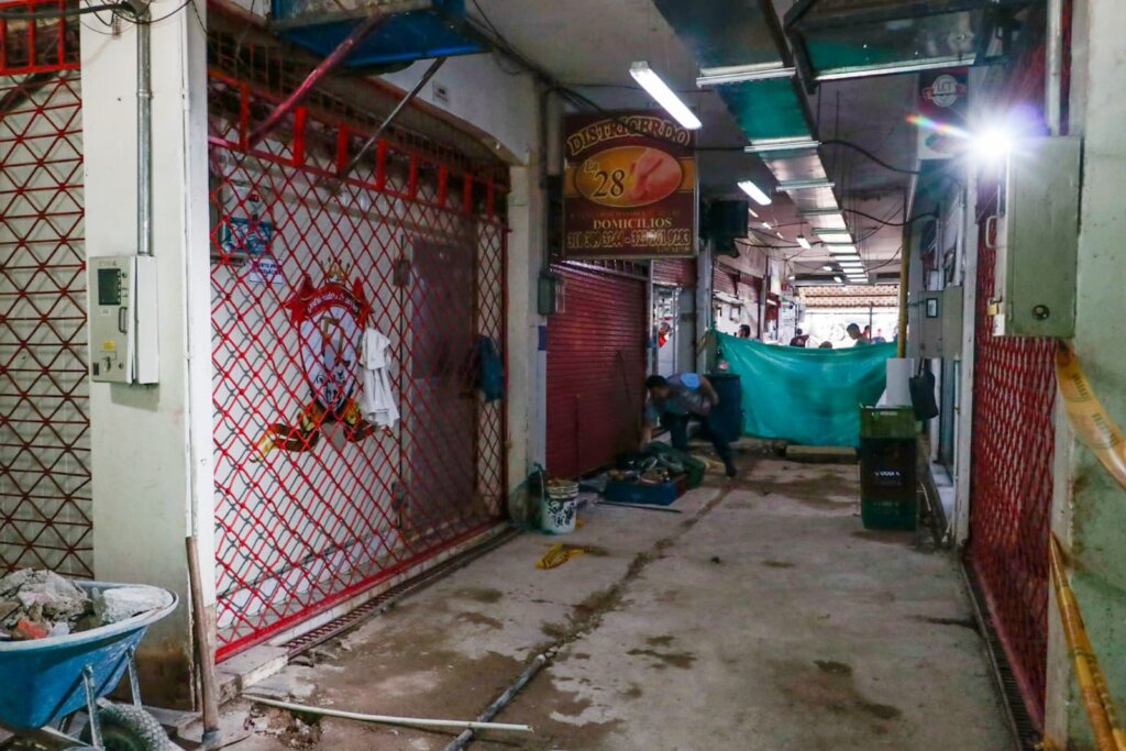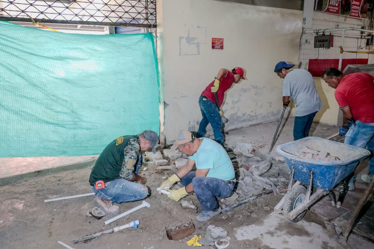 A buen ritmo avanza la Alcaldía con las obras de reparación de la red hidrosanitaria, en el pabellón de carnes de la Plaza de La 28, punto donde se presentaron fallas debido a que estas conexiones se hicieron hace décadas, y actualmente provocaron fugas, problemas de humedad y daños en el piso.