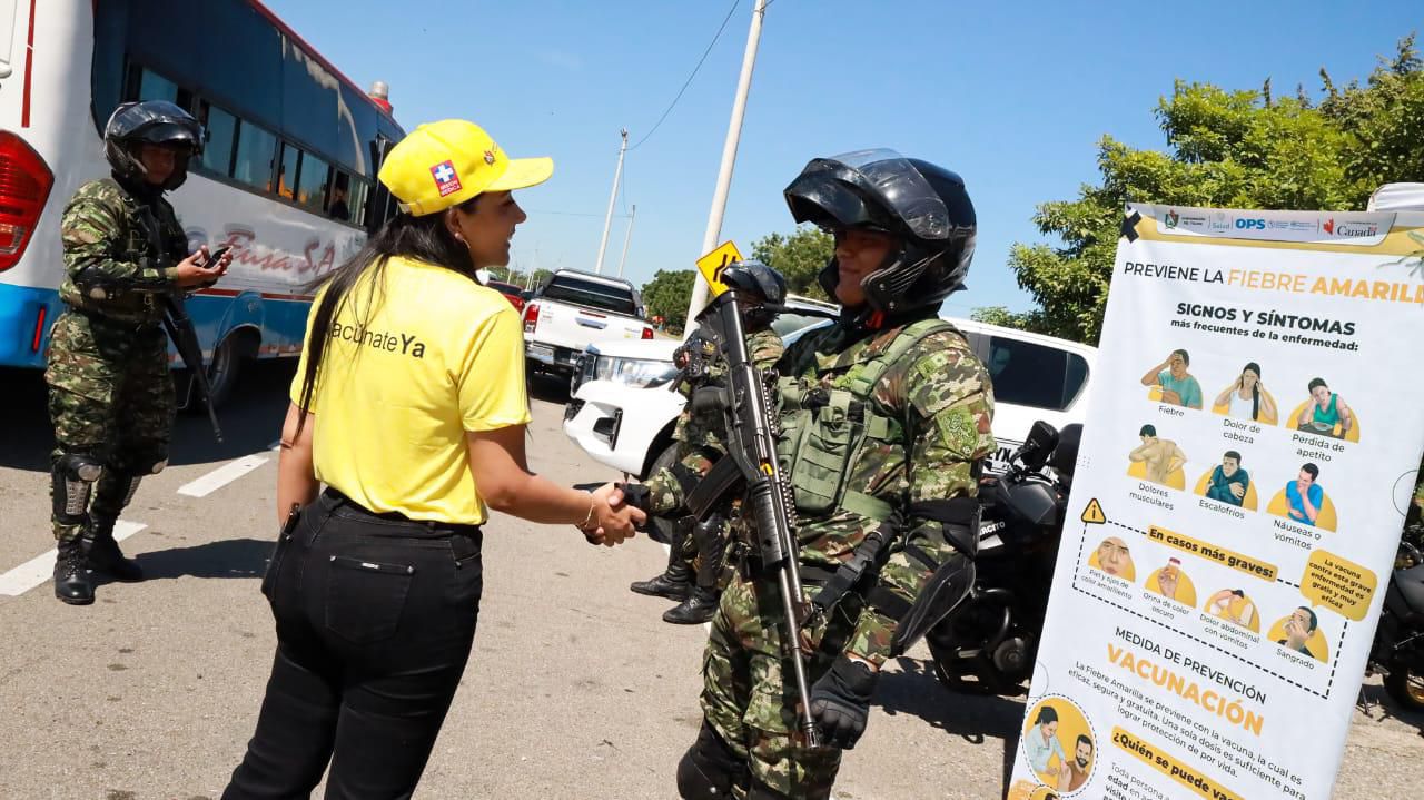 En el marco de las celebraciones que se viven en varios municipios del departamento del Tolima, la Gobernación del Tolima, en articulación con la Fuerza Pública y las alcaldías municipales, intensifica los controles y campañas de prevención contra la fiebre amarilla, especialmente en los principales corredores viales del centro oriente como el peaje Flandes – El Espinal.