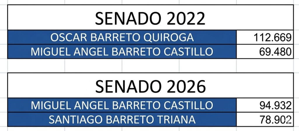 Si, Óscar Barreto ganó con su sobrino Santiago, pero cedió terreno electoral en el departamento, pasando de 90 mil votos en 2022 a menos de 70 mil en 2026. Para completar, el exgobernador ya debió ‘apretar el botón de pánico’ con los resultados en Ibagué, ciudad que siempre le ha sido esquiva a su organización y donde este domingo, el barretismo sacó 16 mil votos al senado - 15 mil menos que en 2022 - versus los 14.500 votos que obtuvo Miguel Barreto; una victoria agridulce para el - hasta ahora - jefe conservador del Tolima.
