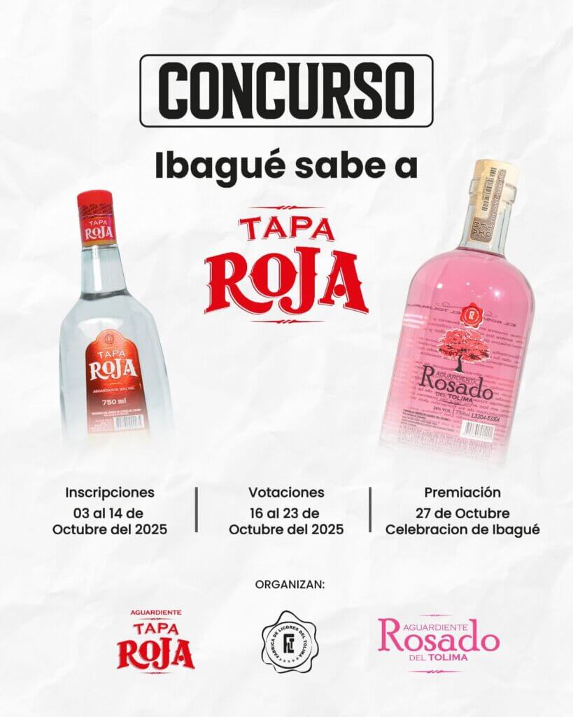 El concurso inicia el 3 de octubre y estará abierto hasta el 14 de octubre de 2025 a las 11:59 p.m. para que los participantes (mayores de edad, residentes en Ibagué o personas que puedan reclamar el premio en la ciudad), compartan una fotografía original que muestre un lugar emblemático de Ibagué acompañado de una botella de cualquier referencia de aguardientes Tapa Roja o Rosado del Tolima.