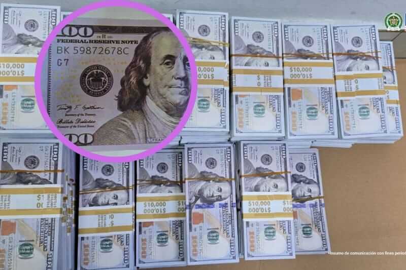 Dentro de la caja, los uniformados encontraron 10.291 billetes de 100 dólares, cuidadosamente distribuidos y embalados en 100 fajos. La inspección detallada reveló que el paquete haría una escala en un centro de distribución de carga en el occidente de Bogotá antes de ser transportado por vía aérea hacia su destino final en México.